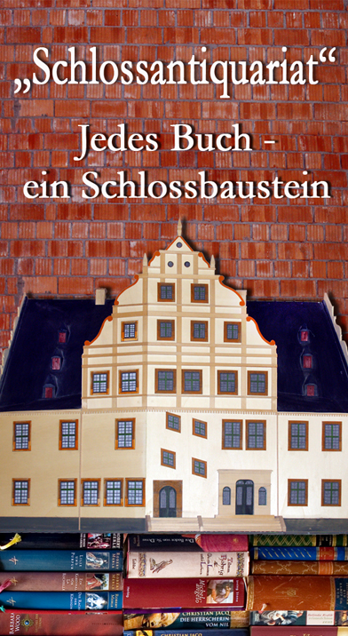 Haben Sie keine Angst, wir "verbauen" Bücher nur indirekt. Aber wie man mit Bausteinen einen Mauerverband schafft, so kann auch ein Bücherverband erheblich zur Erhaltung eines historischen Gebäudes beitragen. Das Angebot unseres Schloss-Antiquariats besteht ausschließlich aus gespendeten Büchern. Bücher, die die Eigentümer nicht mehr benötigen, die diese aber auch nicht wegwerfen wollen und können, gelangen auf den vielfältigsten Wegen in unser "Schloss-Antiquariat".