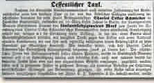 Familiengrab in Meerane, Urkunde Vermächtnis Oscar Schmieder und öffentliche Danksagung im Meeraner Tageblatt