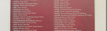 Diese Tafel ist im Erdgeschoss am barrierefreien Zugang des Schlosses zum Dank und zur Erinnerung an die vielen Spender, mit deren Unterstützung die Barrierefreiheit realisiert werden konnte, aufgestellt worden.